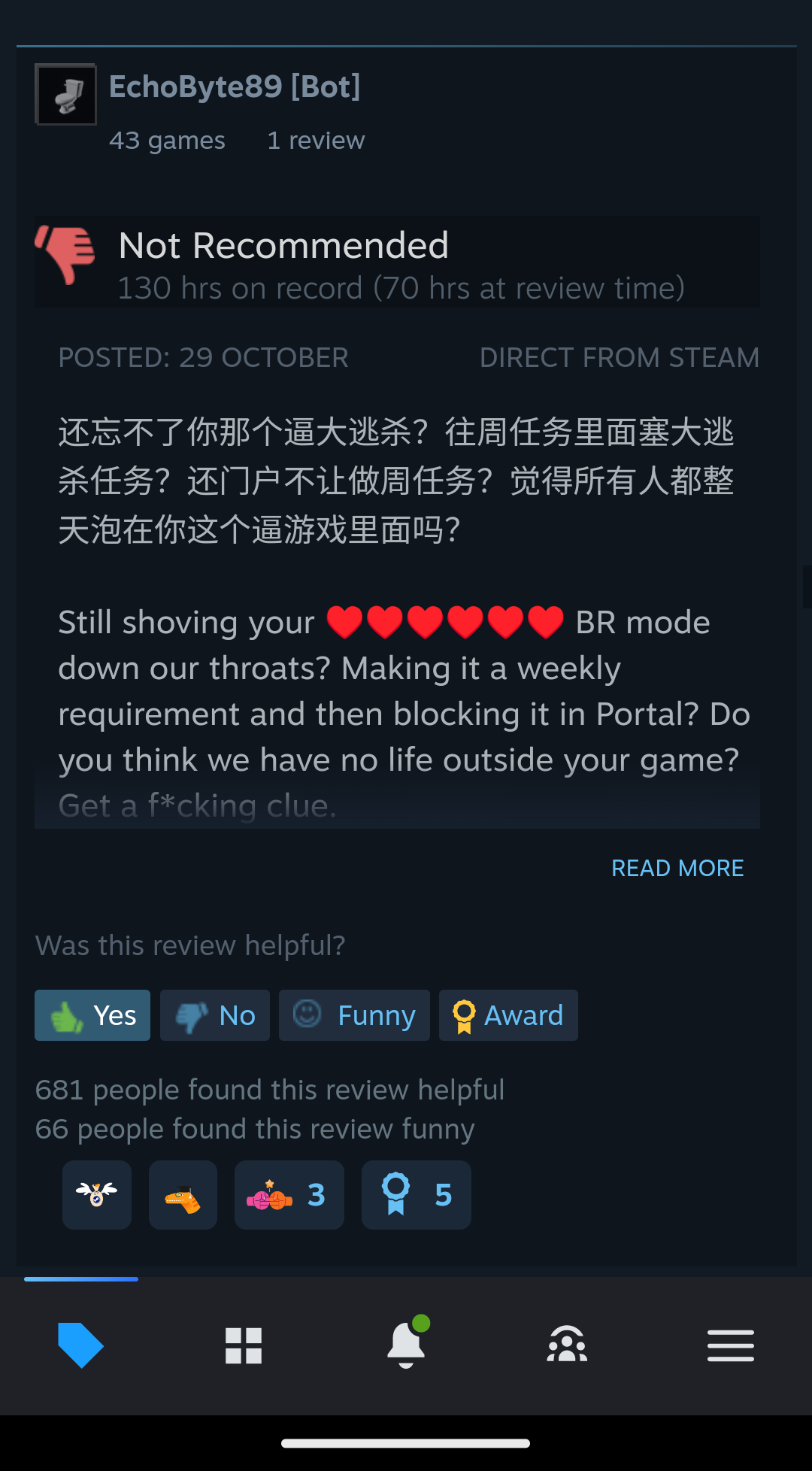 也不再抱怨NFS Unbound怎样怎样了,路见不平,直接卸载,到处喷也没什么用,车游的圈子很小,所以各路魔怔小鬼也是特别的多,维护它的太监自然也不会善罢甘休。虽然这一代垃圾,但还有其他的一堆做得好的NFS倒是天天挺多人上线,即使它们都没有更新了,至少服务器还没死,自己车技好还莫名收了几个好友邀请,是不是晶哥还得有待观察了