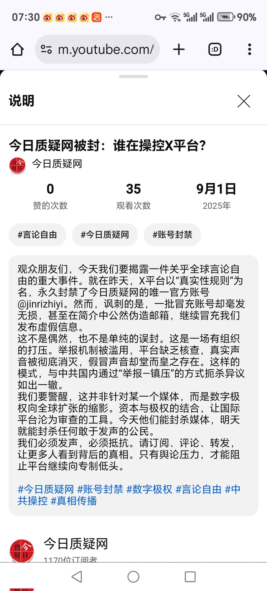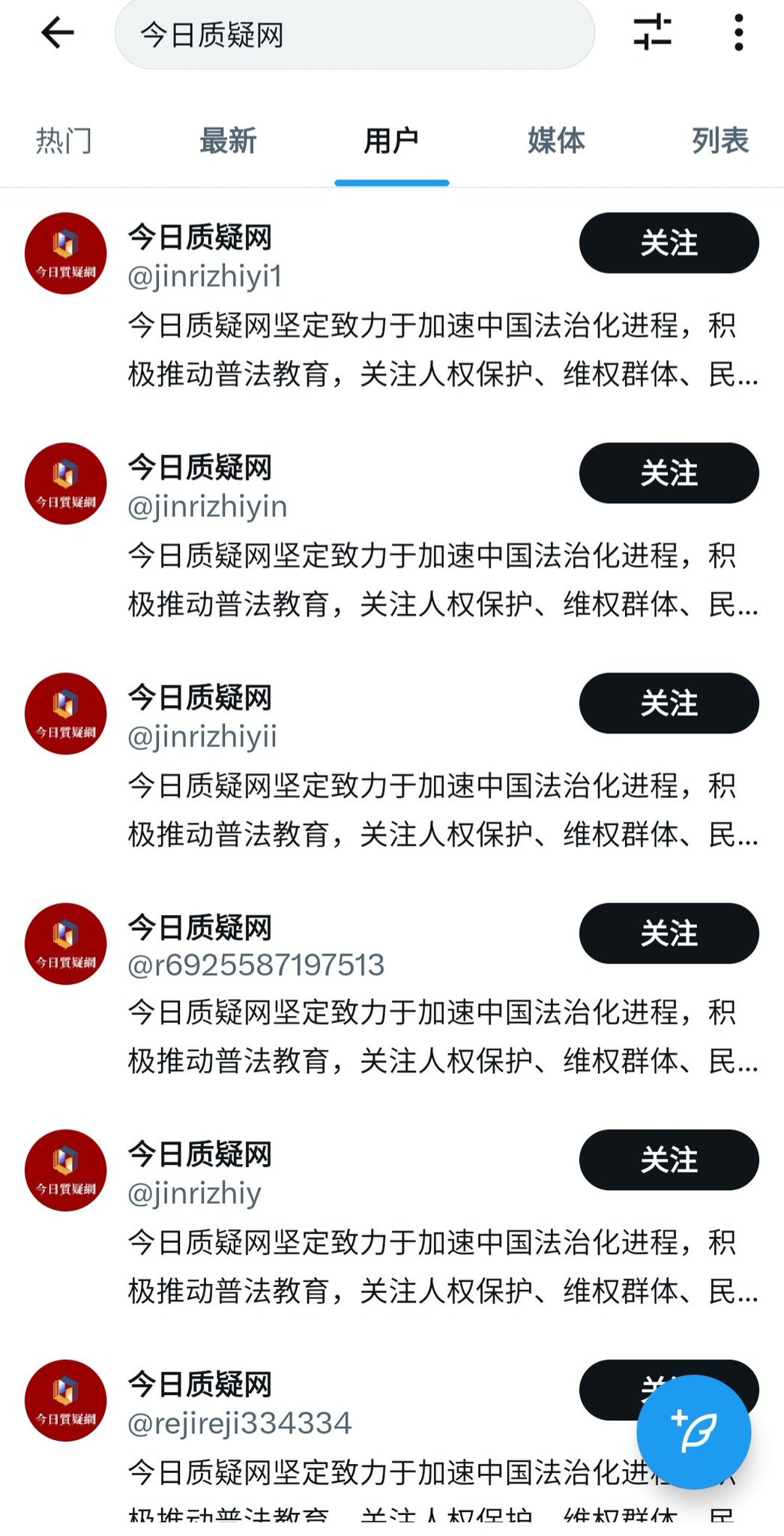 网友们还记得“今日质疑网”这个账号吗?它每天详细地把中国境内中共侵犯人权的事件、报告披露出来,让全世界了解中共极权统治的黑暗!博主每天录制视频,写文章,发布信息,非常辛苦。 然而9月1日前,它被永久封禁了。荒谬的是网上冒充“今日质疑网”的账号很多,堂而皇之地钓鱼。