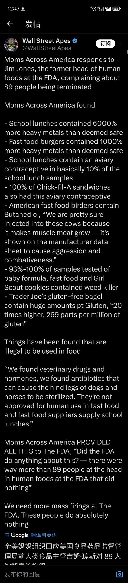 全美妈妈联盟回应前FDA人类食品主管吉姆·琼斯,其抱怨89人遭解雇
